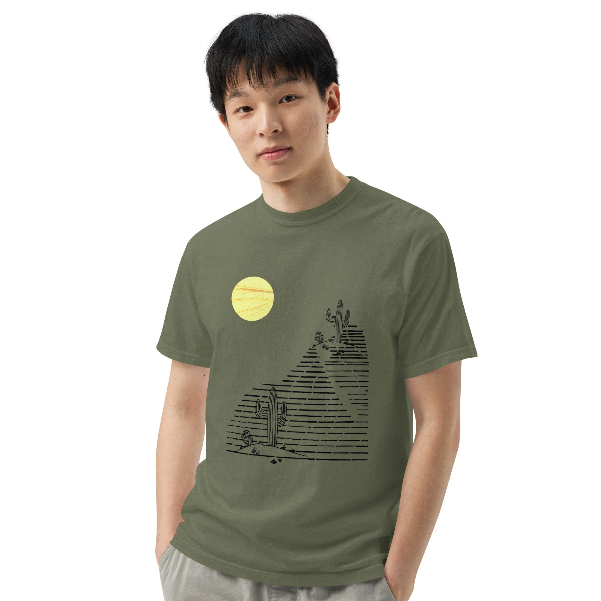 If you’re looking for a thick, structured tee that’s also super soft and breathable—look no further! The unisex garment-dyed heavyweight t-shirt ticks all the boxes and is made of 100% ring-spun cotton. The regular t-shirt style will complement most looks and fit you to a tee.
